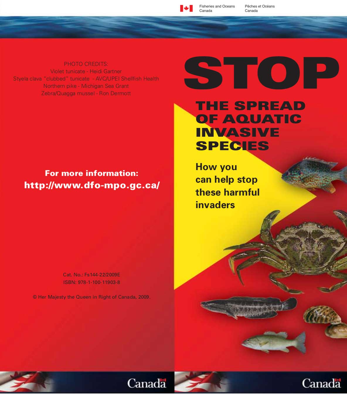Espèces aquatiques Download selected Folder Aquatics Document A review of the potential of transport and introduction of AIS through bilge water Published on 04 December 2020 Modified on 04 January 2021 By Anonymous 1882 downloads Download (pdf, 146 KB) Yukon Bilge Water Literature Review Final.pdf pdf Aquatic Invasive Species Rack Card Published on 04 April 2021 Modified on 15 June 2021 By Anonymous 2079 downloads Download (pdf, 413 KB) 085-003 – Aquatic Outreach_Rack Card_05_WEB.pdf Quick facts on invasive mussels and didymo and CDD best practices pdf Didymo InfoMap – December 2014 Published on 01 December 2016 Modified on 20 May 2018 By Anonymous 3087 downloads Download (pdf, 1.17 MB) Didymo_InfoMap_Dec2014.pdf Didymo is an alga, also known as “Rock Snot”. It has been found in the Yukon and Kathleen rivers, but it may be elsewhere in Yukon. Didymo can degrade fisheries and the aquatic ecosystem. pdf Fact sheet on Zebra and Quagga Mussels Published on 15 June 2021 Modified on 15 June 2021 By Anonymous 2552 downloads Download (pdf, 1.31 MB) 085-003 – Aquatic Outreach_Mussels Fact Sheet_04_WEB.pdf pdf Leung and von Finster, 2016 Env invasive species survey didymo algae 2014 Published on 16 October 2019 By Anonymous 3270 downloads Download (pdf, 1.14 MB) Leung and von Finster, 2016. Env-invasive-species-survey-didymo-algae-2014.pdf Literature Review, Risk Assessment and Recommendations – 2016 pdf Rainbow Trout Yukon Published on 16 July 2014 Modified on 20 May 2018 By Anonymous 3862 downloads Download (pdf, 915 KB) Rainbow Trout Yukon.pdf The distribution of introduced Rainbow Trout in the Upper Yukon River Basin 2013. pdf Stop the Spread of Aquatic Invasive Species Published on 07 March 2018 Modified on 20 May 2018 By Anonymous 3067 downloads Download (jpg, 93 KB) stopthespread.jpg How you can help stop the spread of aquatic invasive species. A brochure published by the Department of Fisheries and Ocean Canada. pdf YISC FctSht Marine mar2019 Published on 08 November 2019 Modified on 08 November 2019 By Anonymous 2640 downloads Download (pdf, 505 KB) YISC-FctSht-Marine-mar2019.pdf Best Practices info sheet pdf Zebra Mussel Facts Published on 08 January 2014 Modified on 20 May 2018 By Anonymous 4277 downloads Download (pdf, 598 KB) Mussel_facts.pdf The zebra mussel (Dreissena polymorpha) is a small freshwater mussel. This species was originally native to the lakes of southern Russia.The zebra mussel has been accidentally introduced to numerous other areas, and has become an invasive species in many different countries worldwide.